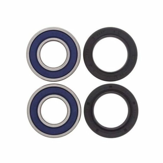 Contain all of the bearings and seals required to re-fit a wheel, The most extensive line of kits for off-road applications, Wheel bearings typically fail from water and dirt contamination. The All Balls wheel bearing was developed in partnership with KML Bearing and is designed for the difficult operating environment of the Power Sport industry, Premium EMQ quality, hi-speed-bearing featuring low drag, double lip rubber seals which provide superior exclusion of water, dirt and to improved grease retention, Type TC Nitrile Elastomer wheel seals are specifically designed to keep out water and dirt, The rubber coated outside diameter creates an optimum seal at the hub, Steel garter spring guarantees constant pressure on the axle shaft over the life of the seal. Front kits are per wheel; rear kits are per axle unless noted