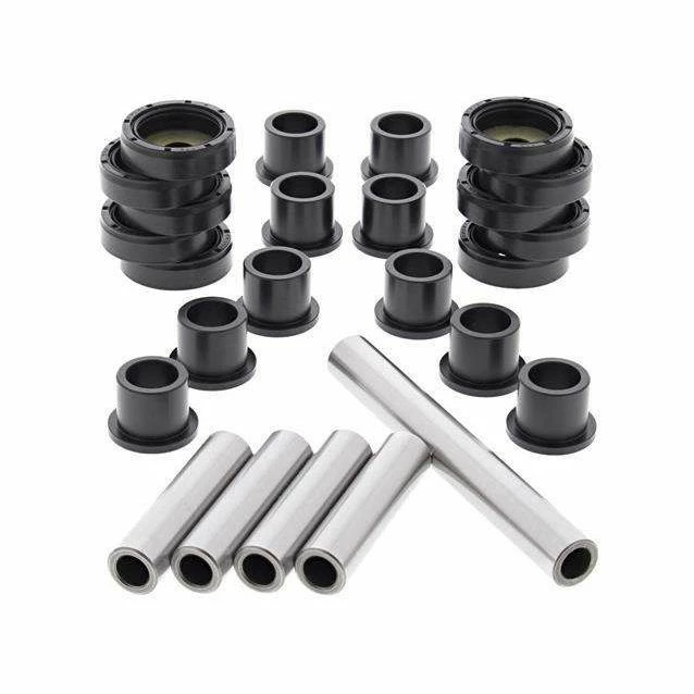 Kits contain all of the components required to rebuild the upper and lower A-arm and knuckle; Needle bearing shafts are made with 52100 bearing steel that has been hardened and precision ground; Self-lubricating acetyl Delrin bushings for better wear and performance; All metal bushings are case hardened and plated to prevent wear and corrosion; Two kits required per vehicle.