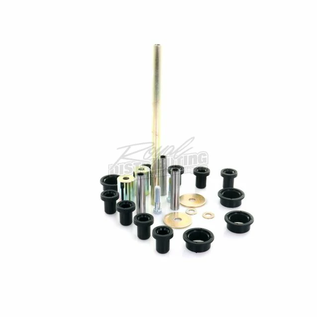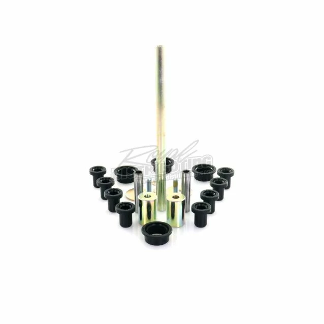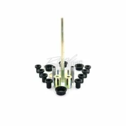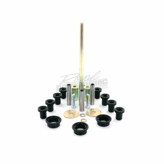 Kits contain all of the components required to rebuild the upper and lower A-arm and knuckle; Needle bearing shafts are made with 52100 bearing steel that has been hardened and precision ground; Self-lubricating acetyl Delrin bushings for better wear and performance; All metal bushings are case hardened and plated to prevent wear and corrosion; Two kits required per vehicle.