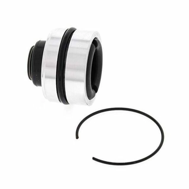 Complete assemblies, ready to install into the shock body; Made from 6061 T-6 aluminum and the same custom elastomer as All-Balls fork seals; All have air bleed holes to help remove air from the oil reservoir during installation; Double-lip oil seal design keeps out dirt and keeps friction low; Some models have updated designs for easier installation; Kits include aluminum body, dust seal, bushing, oil seal, O-ring, internal guide bushing/washer, snap ring, and top-out bumper; ID: 16mm; OD: 40mm; Snap Ring: 43×1.5 round