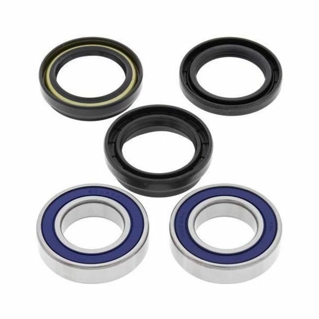 Contain all of the bearings and seals required to re-fit a wheel, The most extensive line of kits for off-road applications, Wheel bearings typically fail from water and dirt contamination. The All Balls wheel bearing was developed in partnership with KML Bearing and is designed for the difficult operating environment of the Power Sport industry, Premium EMQ quality, hi-speed-bearing featuring low drag, double lip rubber seals which provide superior exclusion of water, dirt and to improved grease retention, Type TC Nitrile Elastomer wheel seals are specifically designed to keep out water and dirt, The rubber coated outside diameter creates an optimum seal at the hub, Steel garter spring guarantees constant pressure on the axle shaft over the life of the seal. Front kits are per wheel; rear kits are per axle unless noted