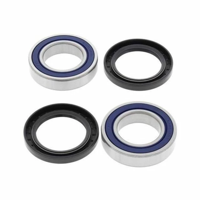 Contain all of the bearings and seals required to re-fit a wheel, The most extensive line of kits for off-road applications, Wheel bearings typically fail from water and dirt contamination. The All Balls wheel bearing was developed in partnership with KML Bearing and is designed for the difficult operating environment of the Power Sport industry, Premium EMQ quality, hi-speed-bearing featuring low drag, double lip rubber seals which provide superior exclusion of water, dirt and to improved grease retention, Type TC Nitrile Elastomer wheel seals are specifically designed to keep out water and dirt, The rubber coated outside diameter creates an optimum seal at the hub, Steel garter spring guarantees constant pressure on the axle shaft over the life of the seal. Front kits are per wheel; rear kits are per axle unless noted