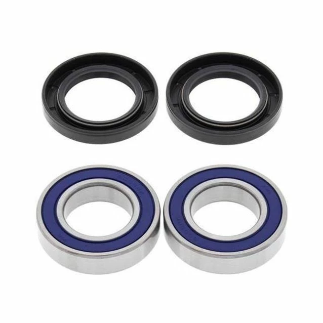 Contain all of the bearings and seals required to re-fit a wheel, The most extensive line of kits for off-road applications, Wheel bearings typically fail from water and dirt contamination. The All Balls wheel bearing was developed in partnership with KML Bearing and is designed for the difficult operating environment of the Power Sport industry, Premium EMQ quality, hi-speed-bearing featuring low drag, double lip rubber seals which provide superior exclusion of water, dirt and to improved grease retention, Type TC Nitrile Elastomer wheel seals are specifically designed to keep out water and dirt, The rubber coated outside diameter creates an optimum seal at the hub, Steel garter spring guarantees constant pressure on the axle shaft over the life of the seal. Front kits are per wheel; rear kits are per axle unless noted