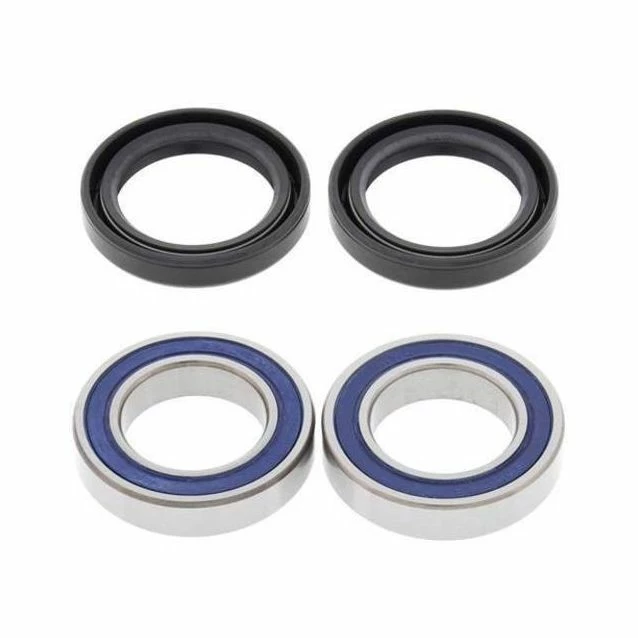 Contain all of the bearings and seals required to re-fit a wheel, The most extensive line of kits for off-road applications, Wheel bearings typically fail from water and dirt contamination. The All Balls wheel bearing was developed in partnership with KML Bearing and is designed for the difficult operating environment of the Power Sport industry, Premium EMQ quality, hi-speed-bearing featuring low drag, double lip rubber seals which provide superior exclusion of water, dirt and to improved grease retention, Type TC Nitrile Elastomer wheel seals are specifically designed to keep out water and dirt, The rubber coated outside diameter creates an optimum seal at the hub, Steel garter spring guarantees constant pressure on the axle shaft over the life of the seal. Front kits are per wheel; rear kits are per axle unless noted