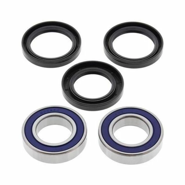 Contain all of the bearings and seals required to re-fit a wheel, The most extensive line of kits for off-road applications, Wheel bearings typically fail from water and dirt contamination. The All Balls wheel bearing was developed in partnership with KML Bearing and is designed for the difficult operating environment of the Power Sport industry, Premium EMQ quality, hi-speed-bearing featuring low drag, double lip rubber seals which provide superior exclusion of water, dirt and to improved grease retention, Type TC Nitrile Elastomer wheel seals are specifically designed to keep out water and dirt, The rubber coated outside diameter creates an optimum seal at the hub, Steel garter spring guarantees constant pressure on the axle shaft over the life of the seal. Front kits are per wheel; rear kits are per axle unless noted