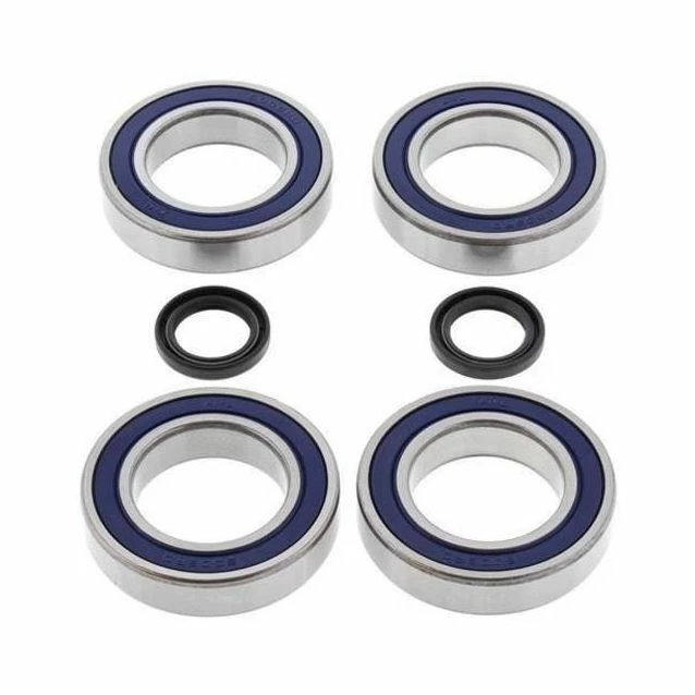 Contain all of the bearings and seals required to re-fit a wheel, The most extensive line of kits for off-road applications, Wheel bearings typically fail from water and dirt contamination. The All Balls wheel bearing was developed in partnership with KML Bearing and is designed for the difficult operating environment of the Power Sport industry, Premium EMQ quality, hi-speed-bearing featuring low drag, double lip rubber seals which provide superior exclusion of water, dirt and to improved grease retention, Type TC Nitrile Elastomer wheel seals are specifically designed to keep out water and dirt, The rubber coated outside diameter creates an optimum seal at the hub, Steel garter spring guarantees constant pressure on the axle shaft over the life of the seal. Front kits are per wheel; rear kits are per axle unless noted