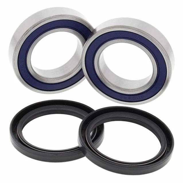 Contain all of the bearings and seals required to re-fit a wheel, The most extensive line of kits for off-road applications, Wheel bearings typically fail from water and dirt contamination. The All Balls wheel bearing was developed in partnership with KML Bearing and is designed for the difficult operating environment of the Power Sport industry, Premium EMQ quality, hi-speed-bearing featuring low drag, double lip rubber seals which provide superior exclusion of water, dirt and to improved grease retention, Type TC Nitrile Elastomer wheel seals are specifically designed to keep out water and dirt, The rubber coated outside diameter creates an optimum seal at the hub, Steel garter spring guarantees constant pressure on the axle shaft over the life of the seal. Front kits are per wheel; rear kits are per axle unless noted