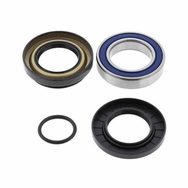 Contain all of the bearings and seals required to re-fit a wheel, The most extensive line of kits for off-road applications, Wheel bearings typically fail from water and dirt contamination. The All Balls wheel bearing was developed in partnership with KML Bearing and is designed for the difficult operating environment of the Power Sport industry, Premium EMQ quality, hi-speed-bearing featuring low drag, double lip rubber seals which provide superior exclusion of water, dirt and to improved grease retention, Type TC Nitrile Elastomer wheel seals are specifically designed to keep out water and dirt, The rubber coated outside diameter creates an optimum seal at the hub, Steel garter spring guarantees constant pressure on the axle shaft over the life of the seal. Front kits are per wheel; rear kits are per axle unless noted