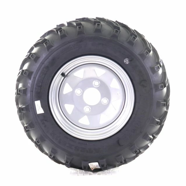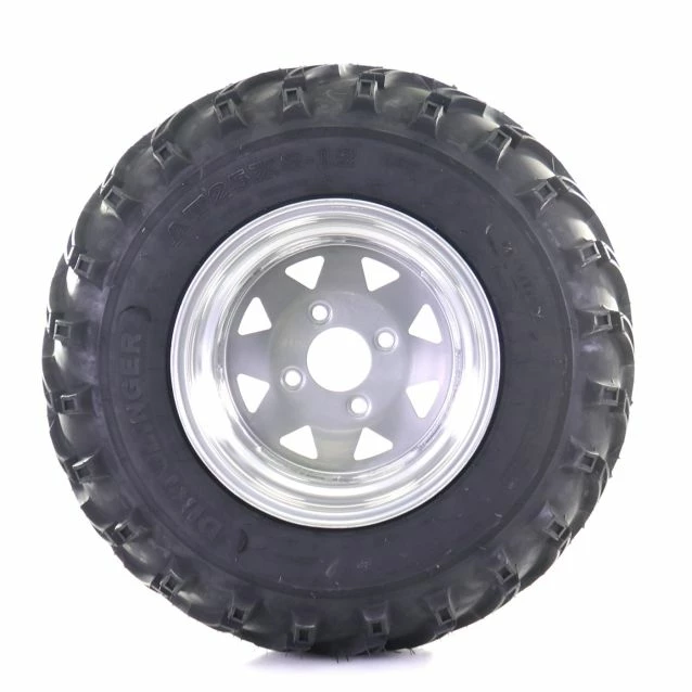 All-Terrain/All-Season ATV/UTV Wheel and Tire Kit. DNA Dirt Slinger Tire: When heading into sticky, slippery, or muddy terrain you want a tire that will bite and help pull your vehicle through, and that’s exactly what you get from the Dirt Slinger Utility ATV/UTV tires. Deep lugs and aggressive pattern not only grip and claw through the rough stuff, but the spaced lugs and tread pattern promotes self-cleaning; easily keeping rocks, mud, and other debris from getting lodged between the lugs. The cutaways in the middle of the lugs help free up weight while also giving extra bite. The claw-like, crossover, center pattern helps provide a smooth and quieter ride. Maxx Steel Rim: Precision rolled rims with stamped high strength centres. Provides a wide range of OEM replacement options.
