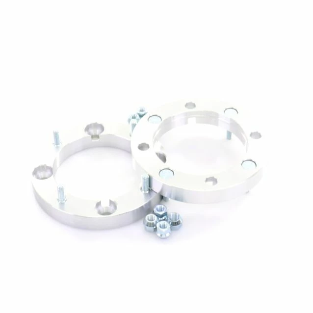 Spacers are made from a 1-2″ piece of billet aluminum, drilled to allow stock wheel nutsto be countersunk into spacer to ensure a flat surface for the wheel to sit against. The outer diameter is different on each spacer to match hub.